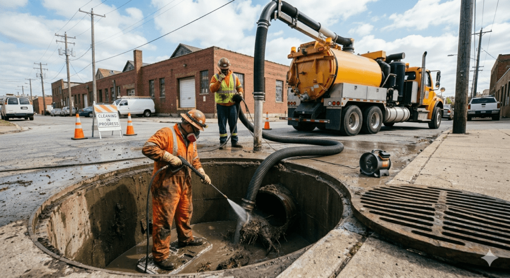Storm drain cleaning removes debris and sediment, allowing water to flow freely through the drainage system.